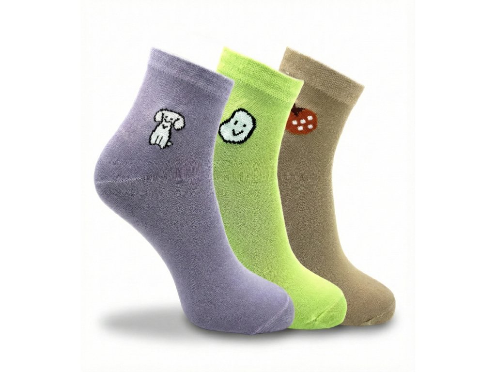 Dámské kotníkové ponožky s obrázkem 3-pack - zelený MIX