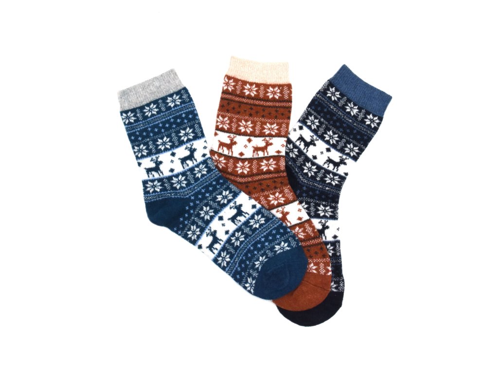 Dámské vlněné ponožky ANGORA s norským vzorem 3-pack - petrolej/oranžová/modrá