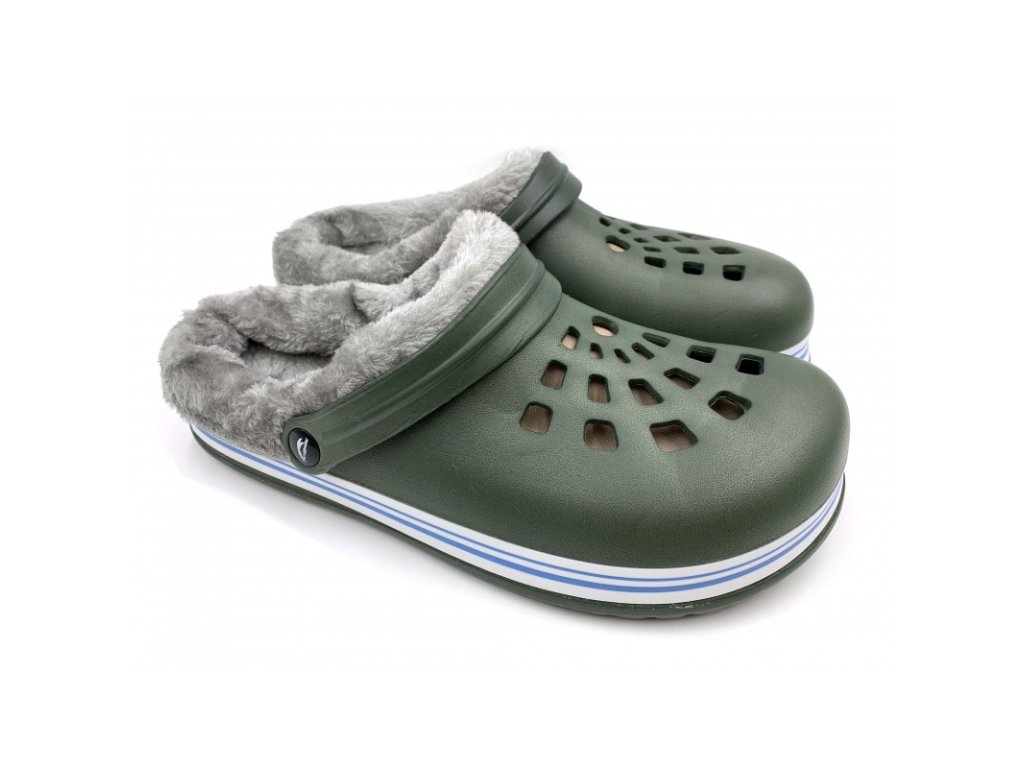 Pánské zateplené clogsy TexBase khaki s šedým kožíškem