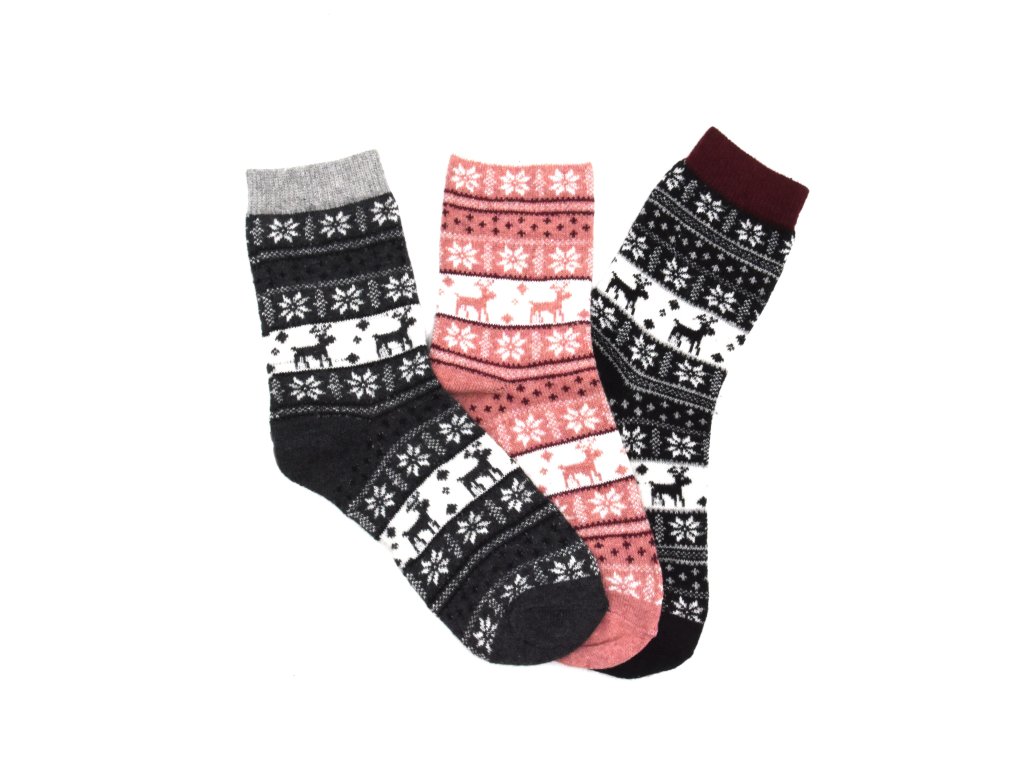 Dámske vlnené ponožky ANGORA s nórskym vzorom 3-pack - ružová/čierna/sivá