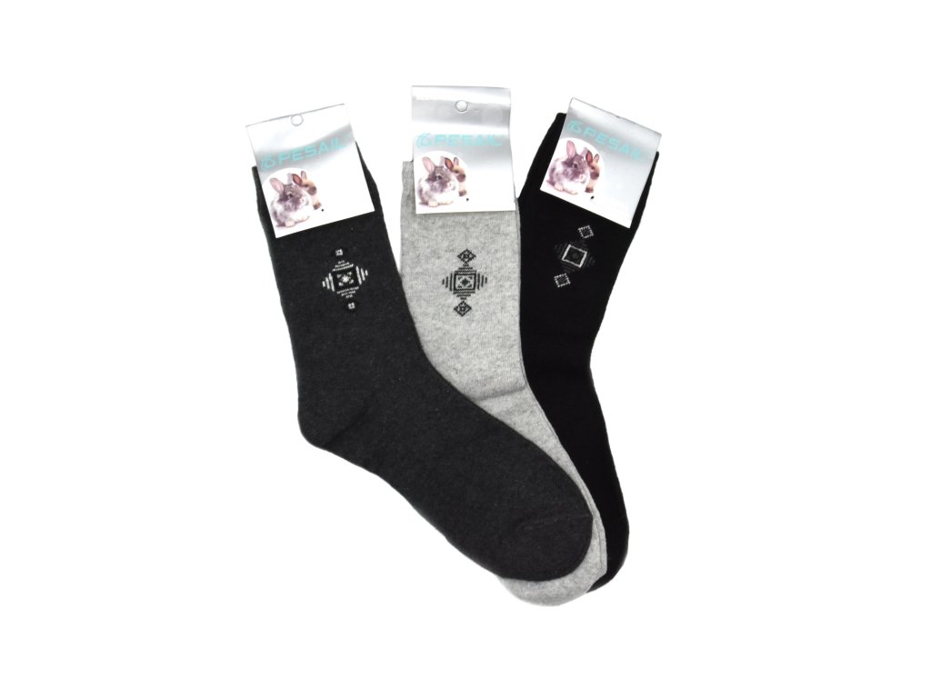 Pánske vlnené ponožky ANGORA VZOR 3-pack - čierna/svetlo sivá/tmavo sivá