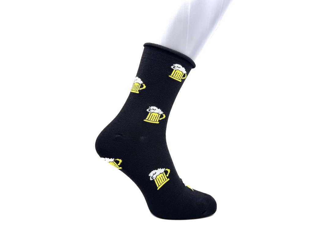 Pánske zdravotné ponožky s „pivným“ vzorom - čierna